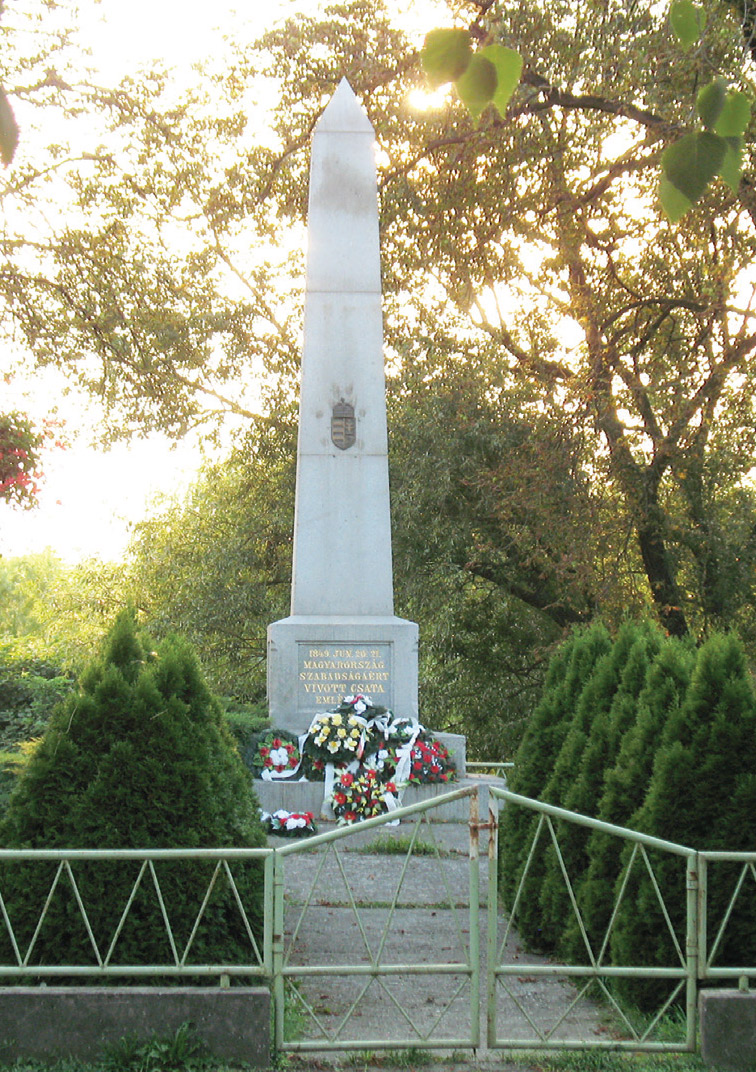 „1849. jún. 20. 21. Magyarország szabadságáért vívott csata emlékére emelte a Pozsony-megyei Honvédegylet 1869. A kegyeletes nép és bajtársak adakozásaiból.”