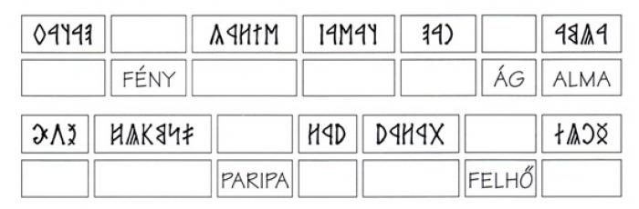 Alsó sor, jobbról-balra: Paripa, nyúl, turul, csúcs, nagy, holnap