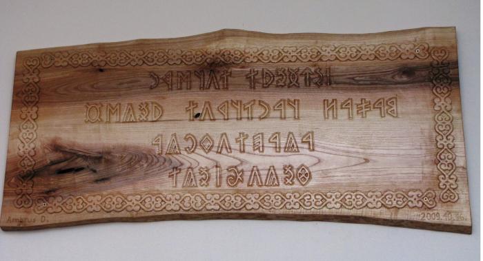 Fejtsék meg, mit faragott Ambrus Dávid erre a szép táblára! Utána másolják be a füzetükbe!