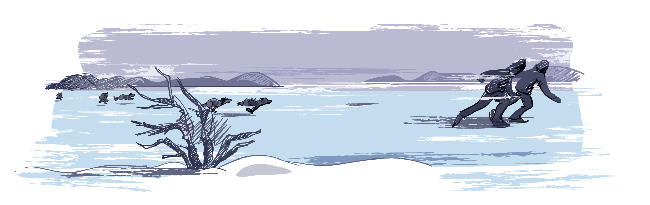 Hol az egyik, hol a másik csúszott el, a mindent beborító jeges bevonaton, mikor végre ismerős tájra, a folyóhoz értek. Jeges töltése szinte megmászhatatlan volt. Pedig nem volt talán egy méter magas. Nagy nehezen fölkapaszkodtak a töltésre. Mindketten még hason fekve csúsztak előre, hogy leereszkedjenek a vízhez, mikor az egyik felkiáltott: