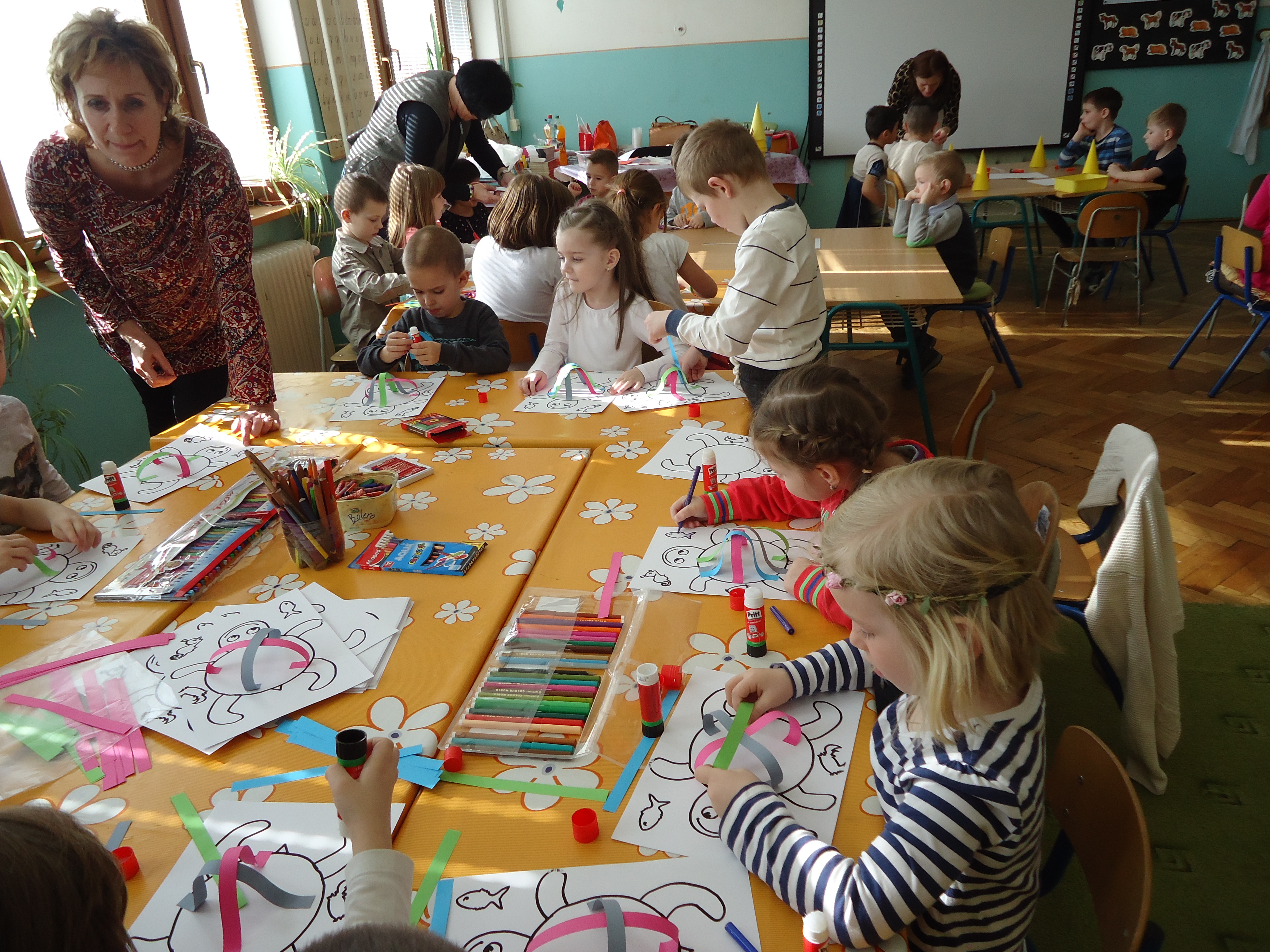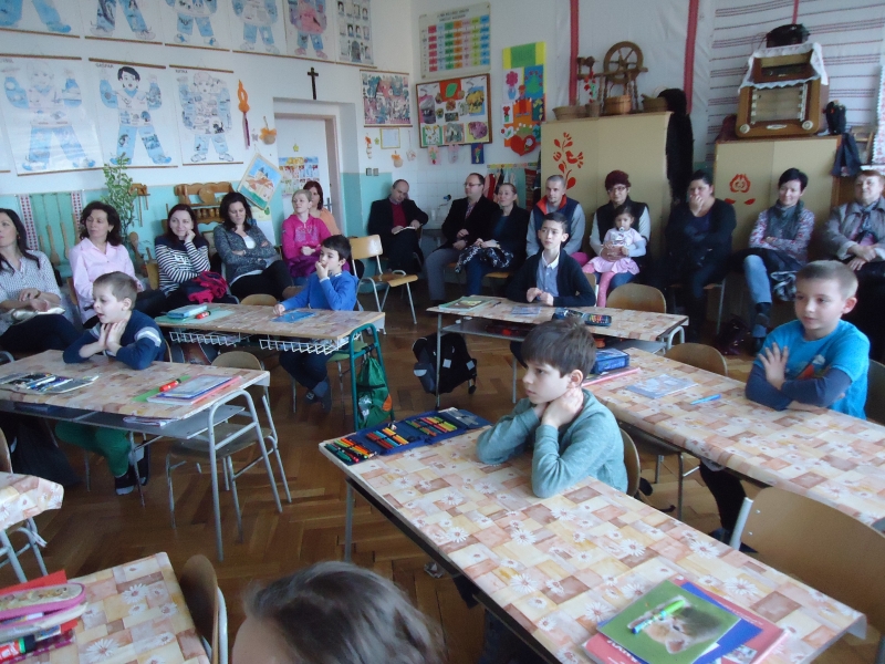 Amíg a bemutató órák zajlottak, Boros Magdaléna, Renczés Nóra és Bugár Mónika kézműves foglalkozást tartott a nagycsoportos ovisoknak, akik együtt dolgoztak az elsős és másodikos gyerekekkel. Az elkészített tárgyakat ajándékként haza is vihették az ovisok, sőt a 2017/2018-as tanév elsősei még ajándékkönyvet is kaptak, amit az iskola igazgatónője adott át. A nyitott nap zárásaként az iskolai klub helyiségében kötetlen beszélgetés formájában a vendégek kifejezték elégedettségüket a rendezvénnyel, a programmal és a bemutató órákkal kapcsolatban. Az igazgatónő válaszolt a vendégek kérdéseire is, akik főként az iskolai rendezvényekről, tanfolyamokról és akciókról, az érdekkörökről stb. érdeklődtek. Örülünk, hogy rendezvényünk sikeres volt, hogy sokan jöttek el és nézték meg az iskolában folyó munkát és hogy vendégeink elégedetten távoztak .