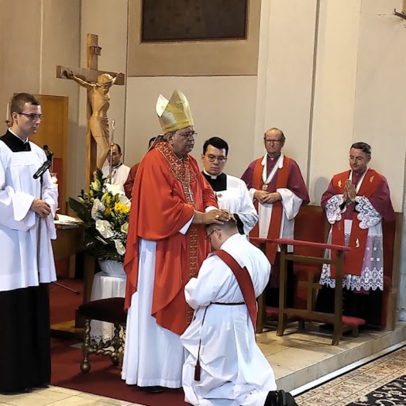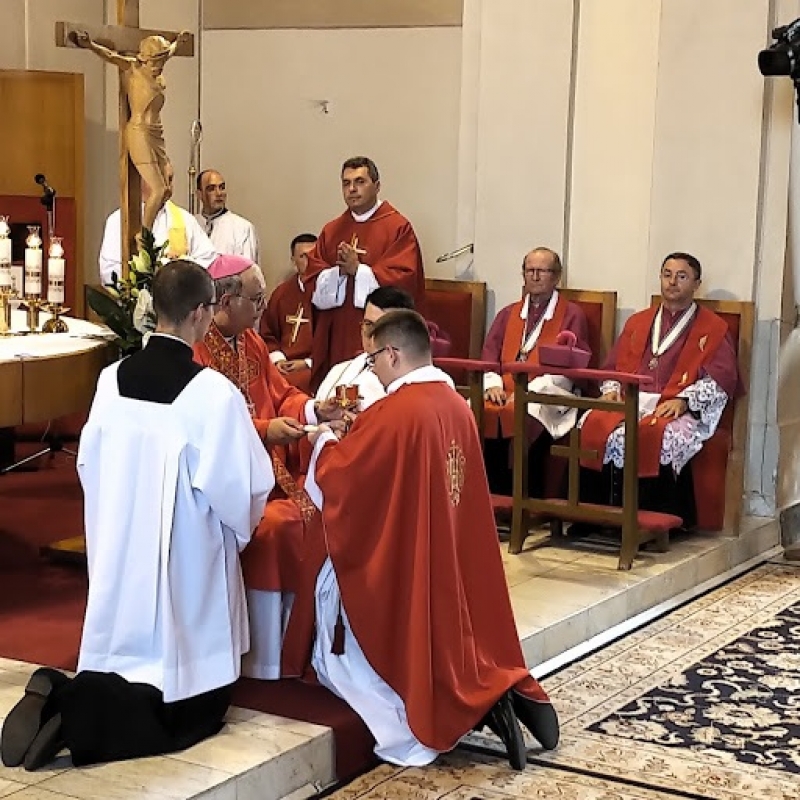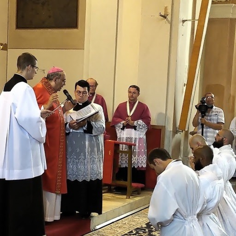 Nem a megszokott, egyszemélyes szentelés volt, hanem olyan egyházi esemény, amely mindeddig sohasem volt templomunkban. Ezen a napon a dunaszerdahelyi Sebő Lászlót is diakónussá szentelte érsek atya, és mellette még három teológushallgatót is, akik Olaszországból érkeztek hazánkba: Ambrus Mária Mihály testvért, József Pál Mária testvért és Lőrinc Mária testvért. Ők és még 5 társuk jelenleg Ekelen, Gáspár atyánk szülőfalujában élnek, ott ismerkednek a nyelvvel és az emberekkel. Néhány hónapja vannak közöttünk, és már elég jól beszélnek magyarul.