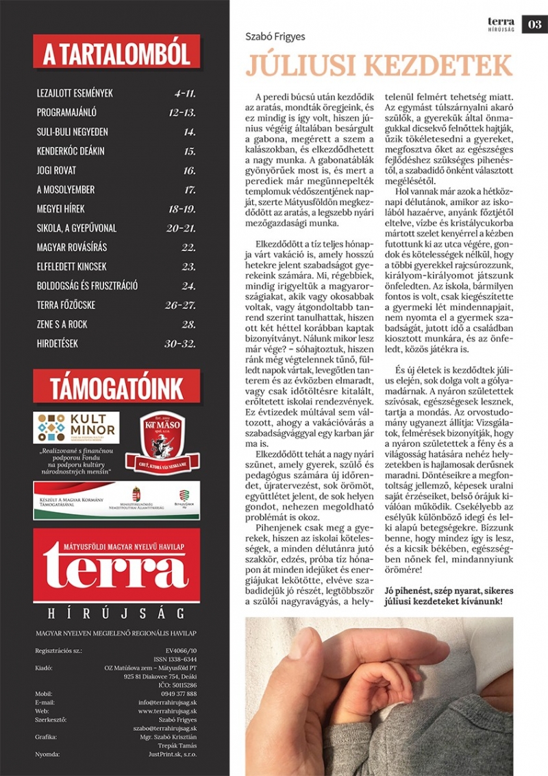 A havilap címlapja a júliusban megrendezendő mátyusföldi nyári fesztiválokat népszerűsíti.