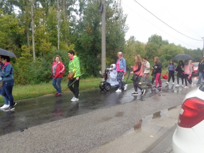 A séta napján, szombat délután, az indulás előtt, az elszánt társaságot a szemerkélő eső próbálta elijeszteni a két és fél kilométeres táv megtételétől. A tallósi, vezekényi, hidaskürti, vízkeleti, feketenyéki, felsőszeli, galántai, légi, bősi, valamint a Pozsonyból és Budapestről érkezett érkezettő hölgyek és néhány úr, fenntartás nélkül nekivágtak a sétának. A napocska látva kedves csapatunkat, pár perc múlva mosolyával elkergette az esőfelhőket, és vidáman kísérte utunkat. A festői környezetben a Kis-Dunánál, a Malom Csárdában az elfáradt sétálók megpihenhettek, a hazavezető utat már egyénileg tették meg. A sétálók életkora 3 és 75 év között volt. Két négylábú kedvenc is sétált gazdájával együtt. A helyi önkormányzat az idén is frissítővel és a rózsaszín kendővel ajándékozta meg a résztvevőket, akik több mint hatvanan voltak.