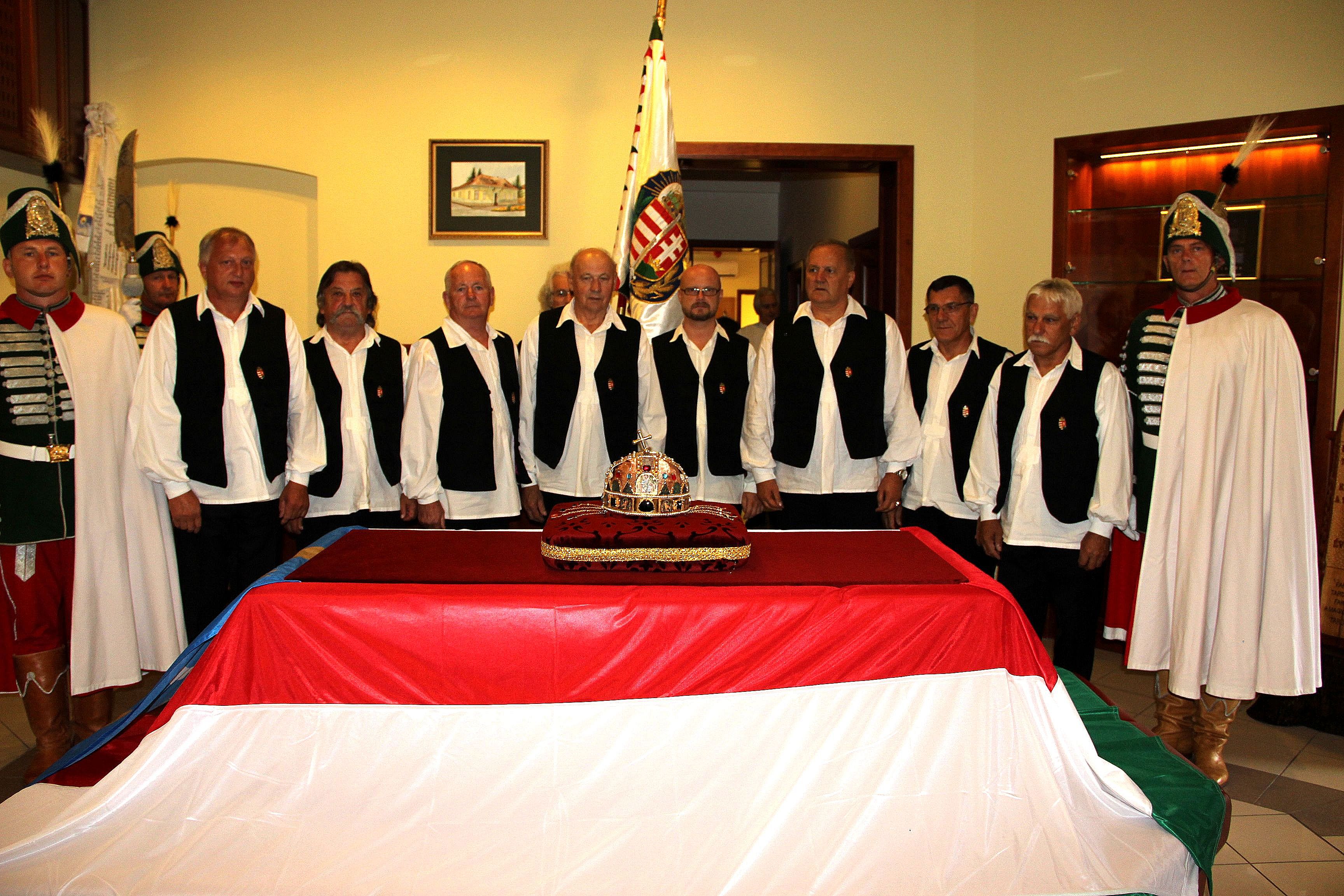 Egy ilyen kivételes ünnepségsorozatra megtiszteltetés meghívót kapni és még nagyobb megtiszteltetés itt fellépni. A meghívott illusztris vendégek mellett Ágh Zoltán, tardoskeddi önkormányzati képviselő és neje, Fugli Gyula, a Csemadok Tardoskeddi Alapszervezetének elnöke is ott voltak. A környeieknek, akik mindig szeretettel fogadják a tardoskeddieket – nem elég csak nagyon jónak lenni. Egy ilyen alkalomra kivételes produkciót kell bemutatni. Így is volt. A Tardoskeddi Férfikar – Vanya István vezetésével – az ünnepségen az Ah, hol vagy magyarok tündöklő csillaga... című Szent István királyhoz írt himnusz Kodály-feldolgozását adta elő, majd később Spányi Antal megyéspüspök úr személyes kívánságára a Boldogasszony anyánk katolikus népéneket énekelték el. Nagyszerű előadásuk emlékezetes marad minden jelenlévő számára. Szabó Imre, a Tardoskeddi Férfikar tagja pedig vállalkozott rá, hogy elénekli Erkel Ferenc Bánk bán című operájának Hazám, hazám... című szépséges áriáját. Beke László, környei polgármester ötlete volt, aki szerette volna, ha ezt a páratlanul szép áriát, a magyar operairodalom gyöngyszemét egy határon túli magyar ember énekli. Szabó Imre képzett zenész, hajlékony, erős bariton hangja alkalmas erre az igényes előadásra. Szabó Imre dr. Janka Kucharová és Matúš Hlozák tótmegyeri orgonaművészeket kérte fel, hogy közreműködjenek a felkészülésben. Janka Kucharová zongorakísérete felvételről ment az ünnepségen. Két hónapig tartottak a próbák, az intenzív gyakorlás. A próbafolyamat alatt még a Férfikar tagjai sem tudták, hogy milyen lesz, nekik is meglepetés volt a produkció, hiszen ők is Környén hallgatták meg először, hogy énekkari kollégájuk, barátjuk hogyan énekel egy operaáriát. A közönség meghatódva fogadta az egyik legszebb magyar áriát egy tótmegyeri-tardoskeddi zenész-énekes előadásában. Óriási siker volt. Szabó Imre nemcsak a hangjával, hanem a szívével, lelkével is énekelt. A környei Főtéren összegyűlt tömeg – mintha érezte és tudta volna ezt - percekig tartó vastapssal jutalmazta az előadást. Tökéletesen illett egy különleges ünnepséghez, a helyszínhez, a Szent Koronához és a Trianon emlékmű felavatásához.
