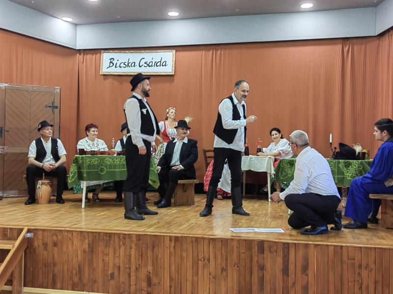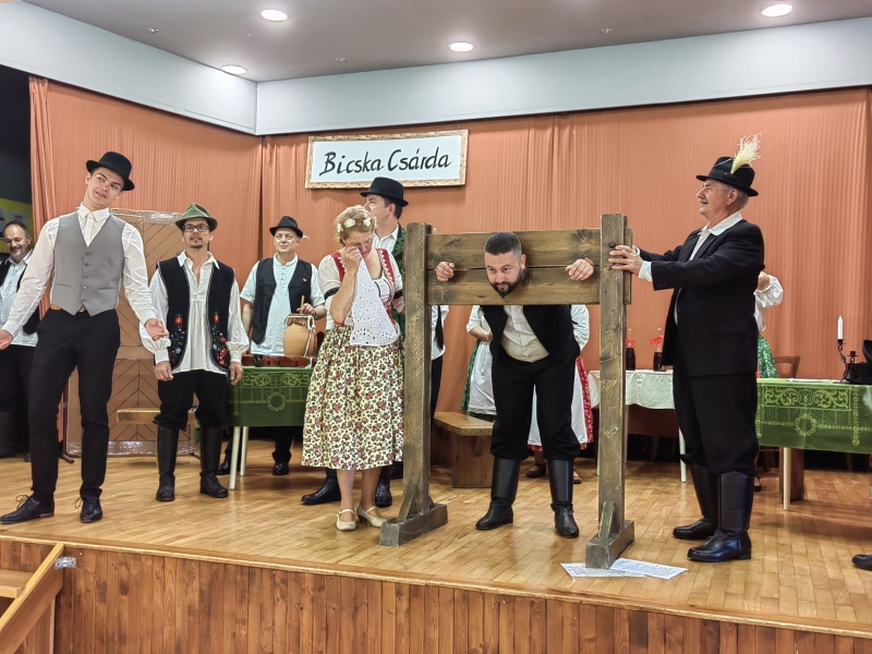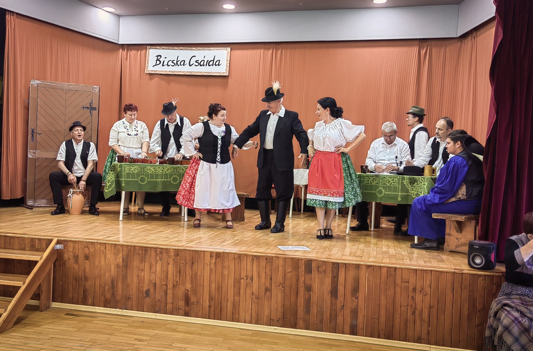 Ezután következett a színielőadás. Végh Piroska rendezésében nagyszerű szereposztással és kiváló énekbetétekkel jó hangulatú előadás kerekedett. A nagyszámú közönség hosszú tapssal jutalmazta a szereplőket, akik a vasárnap délutánt szebbé varázsolták műsorukkal. Köszönet a meghívásért és a kedves fogadtatásért!