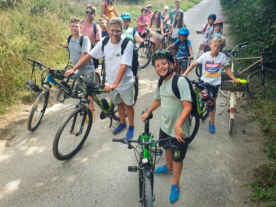 A gyerekek már nagyon várták, hogy újra együtt kalandozzanak, és nagyon örültek annak is, hogy ez alkalommal kerékpáron közlekedve vehettek részt a táborban. A kétkeréken megtett napi 20-30 km nem okozott senkinek problémát a nagy hőség ellenére sem, igazán dicséretre méltóan teljesítettek, elismerésünk. Kicsik és nagyok egymást ösztönözve tekertek, és közben ismerkedtek környékünk kétkeréken megközelíthető falvaival, látnivalóival: ellátogattunk Farkashidára, Kismácsédra, Diószegre, Kaskádyra, Alsószerdahelyre. Másztunk fára, megfürödtünk a Vágban, a Kis-Dunában, defektet kaptunk, aztán még egyet, lesültünk, etettünk kacsákat, fociztunk, társasoztunk, kukorica-labirintusban jártunk, jókat ettünk, ittunk, a nap végén pedig nem akartunk hazamenni…