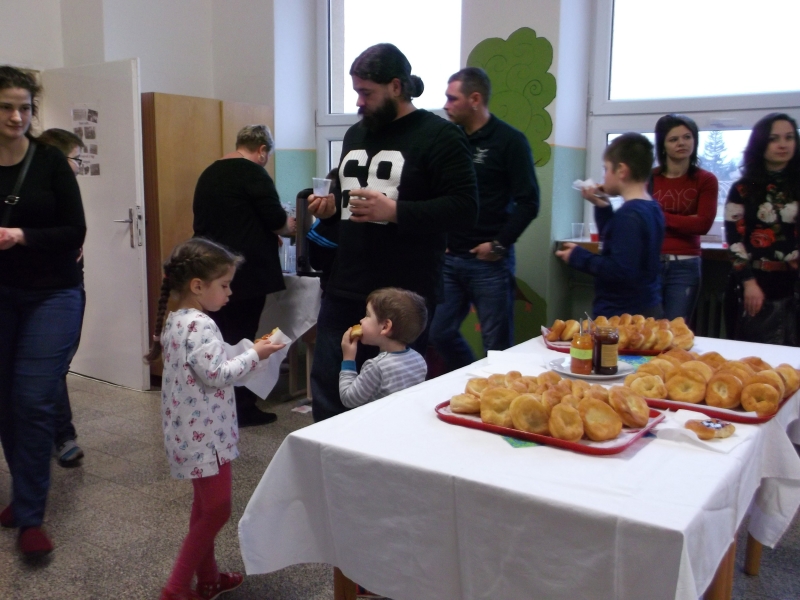 Mesélnek a régi tárgyak címmel kiállítást készítettünk az iskoláról. Érdeklődéssel nézegették a kedves szülők a régi krónikákat és osztálykönyveket, a gyerekek pedig csodálkozva nézegették a kiállított régi tansegédeszkőzöket. Aki belefért, a régi iskolapadot is kipróbálhatta. A fánkóstolónak ismét nagy sikere volt, főleg, hogy sokféle finom lekvárt kaptunk a kedves anyukáktól, nagymamáktól. Köszönet érte. A rendezvény legizgalmasabb része Écsi Gyöngyi és Kováts Marcell előadásában az Angyalbárányok című meseelőadás volt.