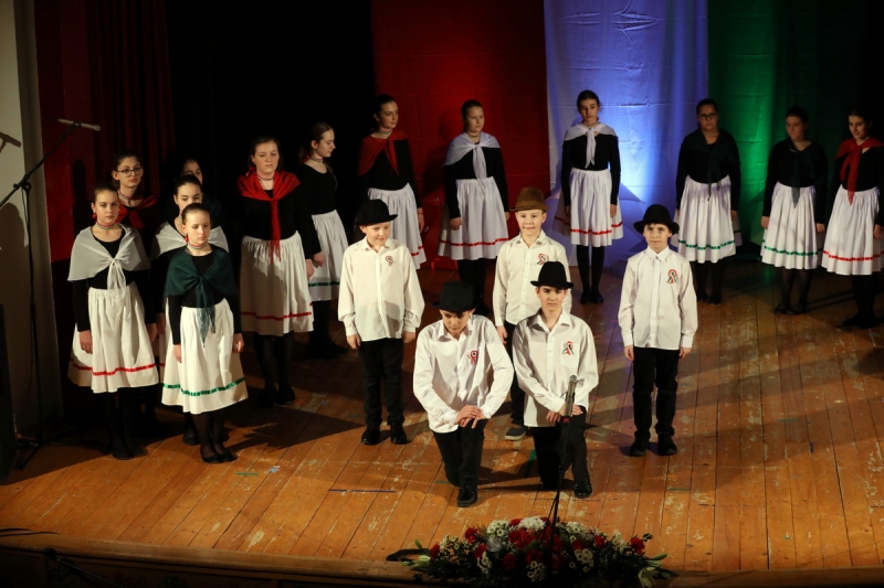 A műsor első részében Borsos Mihály Alapiskola tanulói bizonyították, hogy méltóképpen viszik tovább a márciusi ifjak üzenetét, és az iskola névadójának hagyatékát. Az irodalmi színpad szépen felépített műsorát „Lelkedbe fénylő lángot gyújtok” címmel Radványi Adél és Rakoncza Anikó tanítónők tanították be. A műsor nemcsak a forradalomról, hanem az anyanyelvről és magyarságtudatról is szólt. Nem is kell mondani, hogy fellépésük, értő előadásmódjuk és a színpadi kép nagy sikert aratott a szépszámú közönség körében.