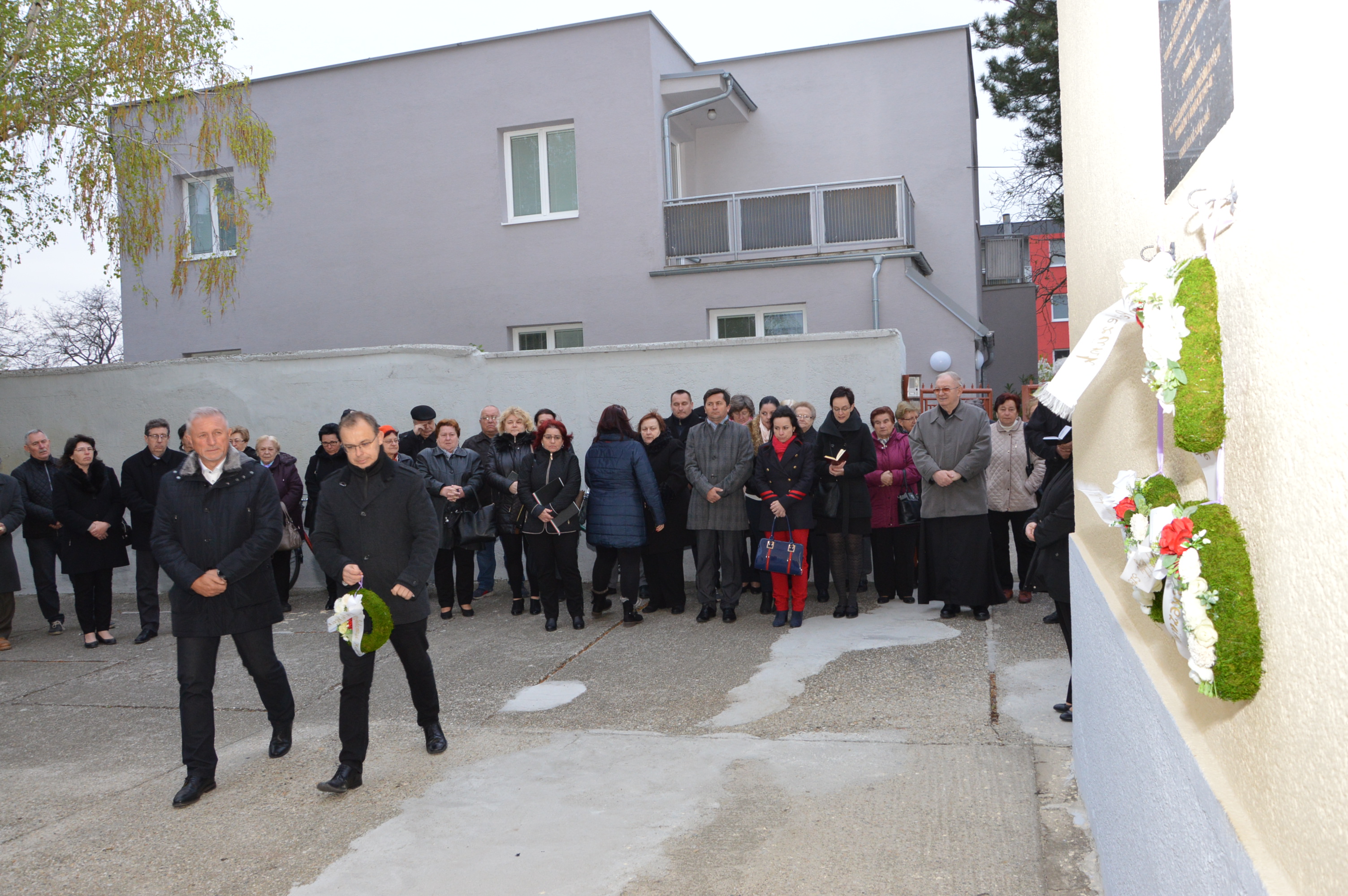 A megemlékezés koszorúzással folytatódott. Az emléktáblánál a község nevében koszorút helyezett el Gőgh Ferenc polgármester, Száraz Pál alpolgármester, a Borsos Mihály Alapiskola nevében Radványi Adél igazgató és Svarda Erzsébet igazgatóhelyettes, az MKP helyi szervezte nevében Bózsing Katalin elnök és Lencsés Zoltán alelnök, a Csemadok helyi szervezetének képviseletében pedig Vajda Gabriella alelnök és Vincze Anghely Klaudia vezetőségi tag.