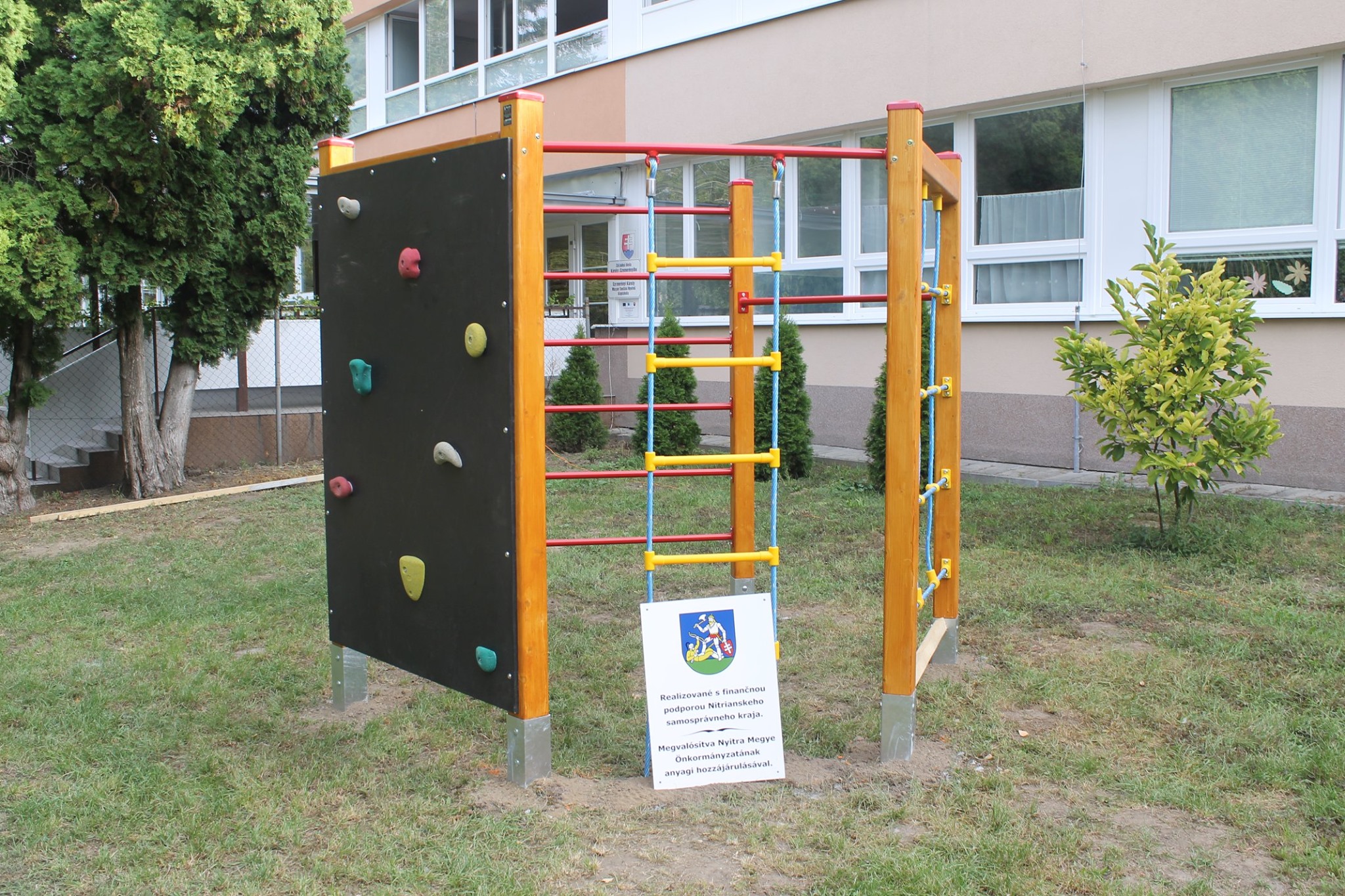 A játszóelem több részből áll, hogy mindenki megtalálja a korához illőt. Ki lehet próbálni a hegymászófalat, a rúdmászást, a létramászást. Az alsó évfolyam tanulóit egy ötöd-ölő fal is várja.