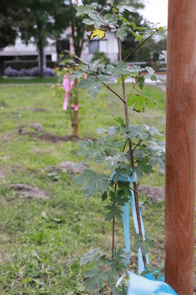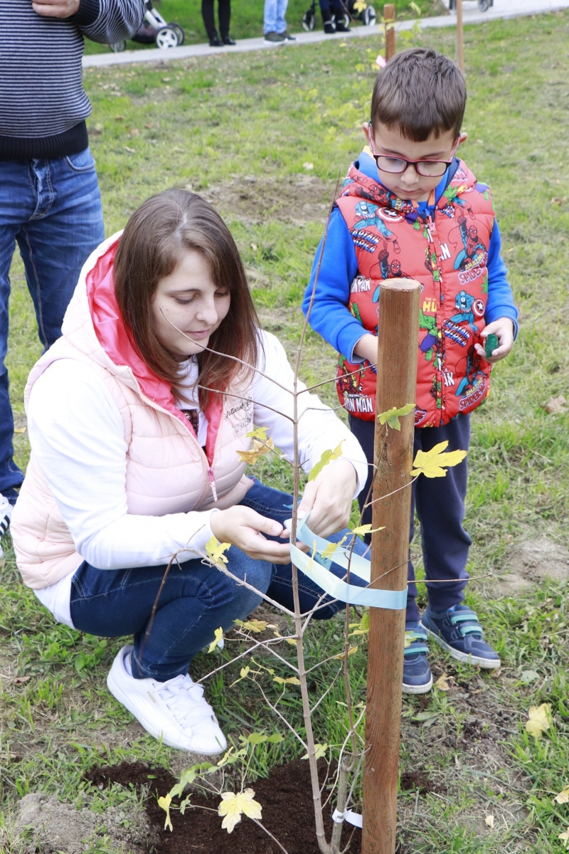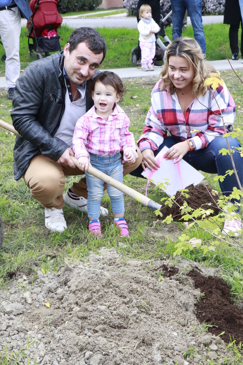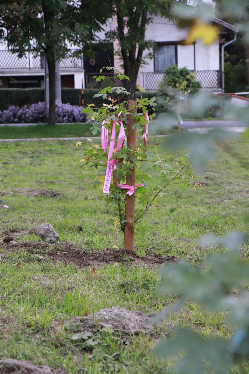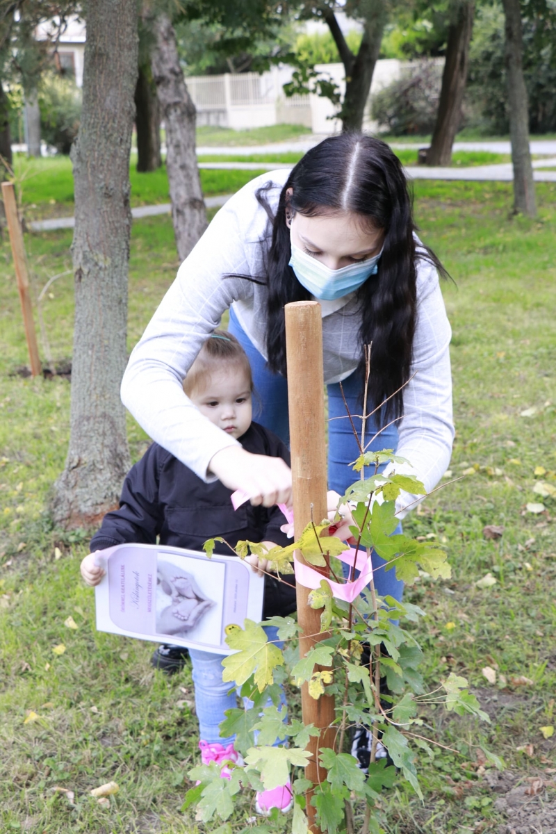 Végül eljött október 10-ke. Az akkori előírások szerint 50 fő vehetett részt egy rendezvényen. Mivel 15 család egyezett bele az ültetésbe, így családonként három fő látogathatott ki. Az ünnepi megnyitót követően a jelenlevő szülők egyenként ültették el a KaKaDu polgári társulás által biztosított mezei juharfákat, melyeket rózsaszín, illetve kék szalagokkal kötöttek át. Ezeken a gyerekek neve és születési éve szerepelt. Készül egy emléktábla is, melyet községünk ismert illusztrátora, Lukovicsová Petra tervez, s egy helyi magánvállalkozó támogat anyagilag. Köszönettel tartozunk a község polgármesterének és alkalmazottainak, akik az élőkészületek során készségesen segítségünkre voltak. Sajnálattal fogadtuk, hogy az ötvenfős felső létszám miatt a helyi alapiskola és óvoda tanulói nem léphettek fel a rendezvényen, holott lelkesen készültek.