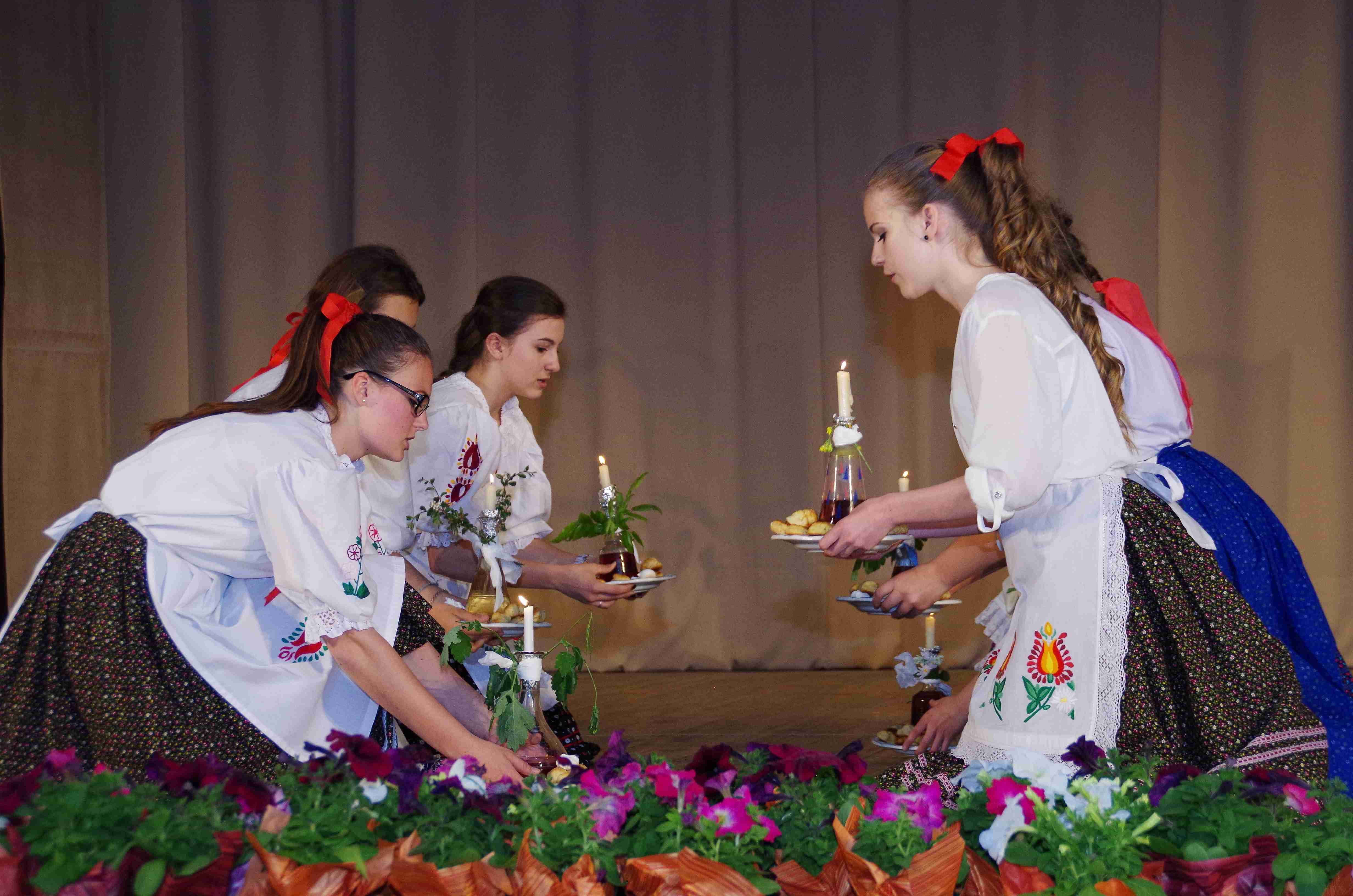 Erre az otthon lévő lány azt válaszolta, hogy: „Köszönöm, és foga- dom, a komaságot megtartom!” Ezután mindketten nagy hangerővel, szint kiabálva a következőt mondták: „Hogyha visszakírëd, kutya isz- sza vírëd!” Újra elénekelték a „Fehír vësárnapon” kezdetű dalt, köz- ben egymás homlokára keresztet rajzoltak. Azután ettek a sütemény- ből, ittak a pálinkából, majd énekelni és táncolni kezdtek.