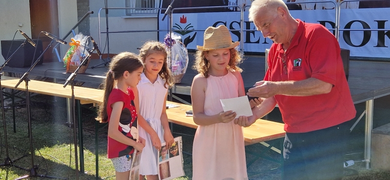 Berényi József köszöntője után a gyönyörű népviseletben táncoló gyerekek, felnőttek fellépése nagy sikert aratott, akár csak az országos versenyeken kiválóan szereplő kis szavalóink és mesemondóink. Fellépett a vágkirályfai Muskátlis Táncegyüttes, a felsőszeli Nyíló Rózsa, de láthattuk a Galántai Kodály Zoltán Alapiskola táncosait, citerásait, és megcsodálhattuk a diószegi Diócska és felsőszeli Kikelet citerazenekar műsorát is. A sokszínű program, a cigánypecsenye, sült kolbász, gulyás terjengő illata sok vendéget csalogatott el a rendezvényre. A fellépők oklevelet kaptak, az aszfaltfestő gyerekek és a gulyásfőző csapatok értékes ajándékokkal távozhattak. Mindenki nagyon jól szórakozott, szinte észre se vettük, hogy elröpült az a néhány óra, és véget ért a juniális.