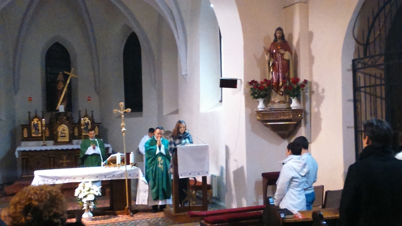 A mise után a szomszédos pasztorációs központban a dunaszerdahelyi négygyermekes Domonkos-házaspár beszélt brazíliai nászúti tapasztalatairól, folytatva a múlt hónapban megkezdett élménybeszámolók sorozatát. Ágnes, az anyuka, angol szakos tanárnő arról is beszámolt hallgatóságának, milyen sikeres missziós munkája a Dunaszerdahely Karcsai úti romanegyedében lakó gyermekek rózsafüzérimádságra tanítása terén. Egyre jobban érik ezen áldozatos munkájának gyümölcse.
