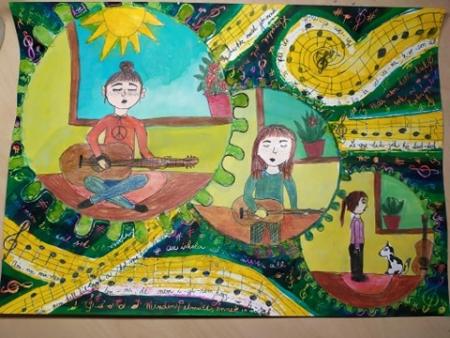 A legutóbbi hír pedig egy kilencedikes és egy hatodikos tanulónk, Varga Szilvia és Pál Edina nagyszerű képzőművészeti eredményéhez köthető. Szilvia a Szlovákiai Magyar Pedagógusok Szövetsége által még áprilisban közzétett a Koronavírus idején című felhívásra készített egy különleges alkotást, mellyel kategóriájában második helyezést ért el. Edina a Galántai Honismereti Múzeum által meghirdetett ,, A mai nők vizuális eszközei-korszerű feliratos falvédő legjobb terve ´´ verseny győztese lett. Büszkék vagyunk rájuk!