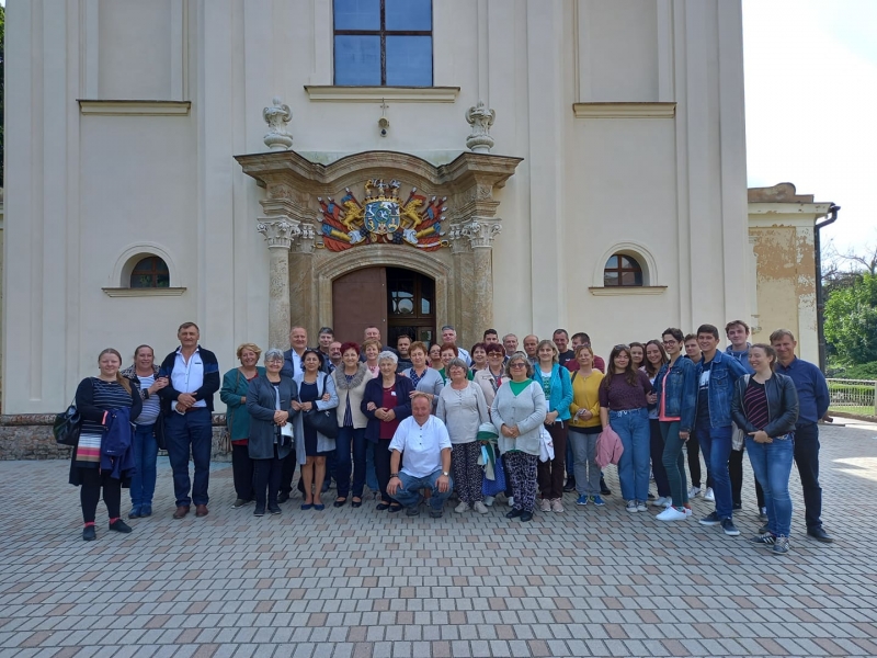 A tardoskeddi vendéglátók kitűnő vasárnap délelőtti programot terveztek nekik. A reggeli után bemutatták Tardoskedd nevezetességeit, végigjárták a későnyári napfényben ragyogó falu minden látnivalóját, majd buszra szálltak, hogy a közeli Tótmegyerre látogassanak. A szépséges, hatalmas parkban álló Károlyi-kastély előtt Szabó Imre tótmegyeri helytörténész-író várta a látogatókat, hogy bemutassa nekik a kastélyt, a parkot, az egyedülálló, fából készült víztornyot, a katolikus templomot, főképpen annak kivételesen szép, barokk díszítésű belső terét. A Károlyi család történetének legavatottabb ismerője „idegenvezetőként” lebilincselően mutatta be szülőfaluja világhírű nevezetességeit. Az énekesek, táncosok remek hallgatóságnak bizonyultak. Nyitott, érdeklődő, mindenre figyelő emberek, akik értékelni tudták a két falut felölelő kirándulást.
