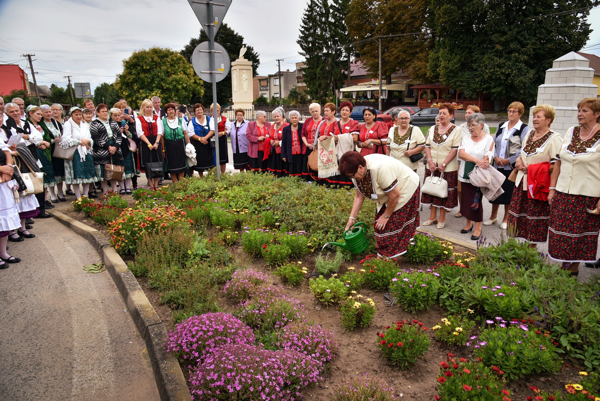 A főutcát a menet idejére lezárták. A községi rendőrség elektromos gépkocsija hang nélkül kísérte a daloló társaságot. Más autó nem zavarhatta meg ezt a látványt. Visszafelé, a templomhoz közeledve megállt a menet az esőtől friss-tisztára mosdatott, virágokkal telis-tele ültetett ágyások egyikénél. Puskás Mária, a tardoskeddi Rozmaring Dalkör vezetője énekszó mellett ültetett el egy bokor rozmaringot az ágyás közepébe. Ennek a szép napnak az emlékére és minden Rozmaring boldogságára.