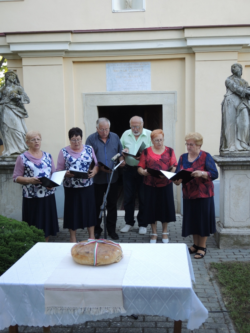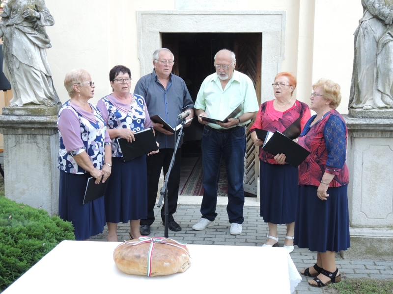 Az ünnep fényét emelték az Aranyeső Nyugdíjasklub éneklőcsoportja előadásában elhangzott, alkalomhoz illő, a magyarságról és Szent István királyunkról szóló csodálatos dalok. A kenyér megáldását követően minden résztvevő megkóstolhatta az új kenyeret.