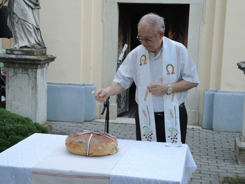 Ez a nap az új kenyér ünnepe is. Reményik Sándor: Mindennapi kenyér című versét Lencsés Mónika tolmácsolta, majd Kasáš Béla atya, a község római katolikus plébánosa megáldotta a nemzeti szalaggal átkötött új kenyeret, amelyet hagyományosan Melisek Rozália sütött erre az alkalomra.