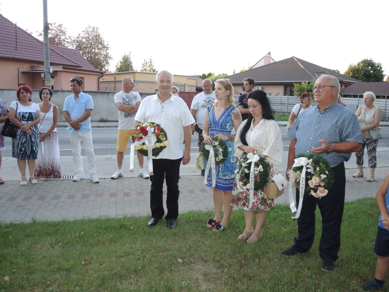 A himnusz elhangzása után a résztvevők átvonultak a tavaly felavatott kopjafához, melynek csúcsát a szent korona díszíti. Az emlékezés koszorúit a Csemadok Galántai Területi Választmánya nevében Mézes Rudolf, a helyi szervezet nevében Sebők Károly, az MKP helyi szervezete nevében Bózsing Katalin, a kulturális központ nevében pedig Hanzel Enikő helyezte el.