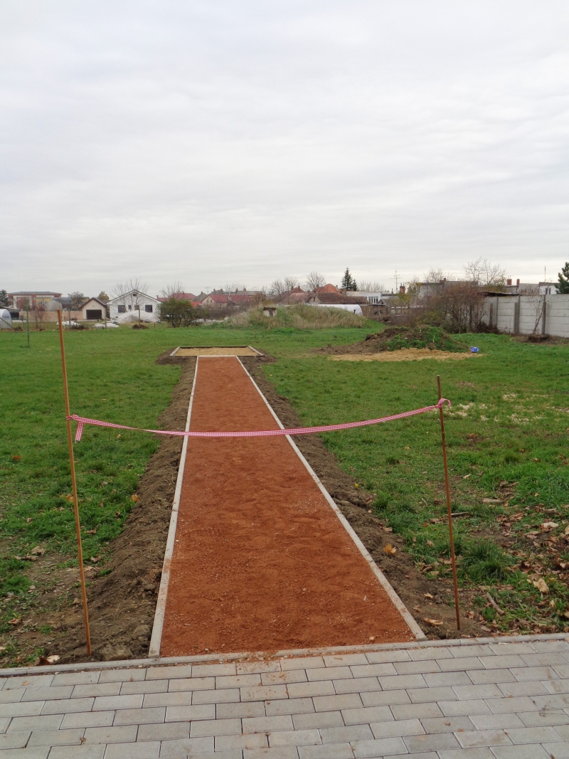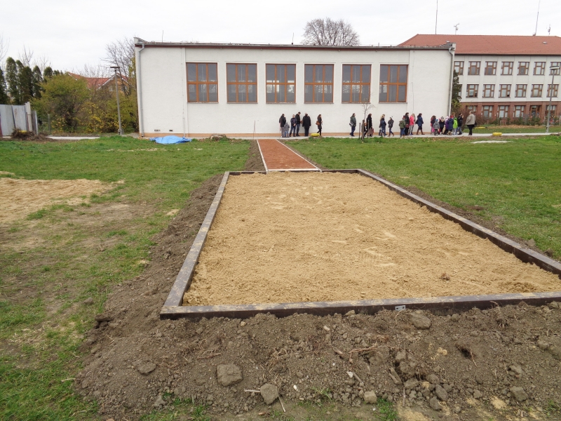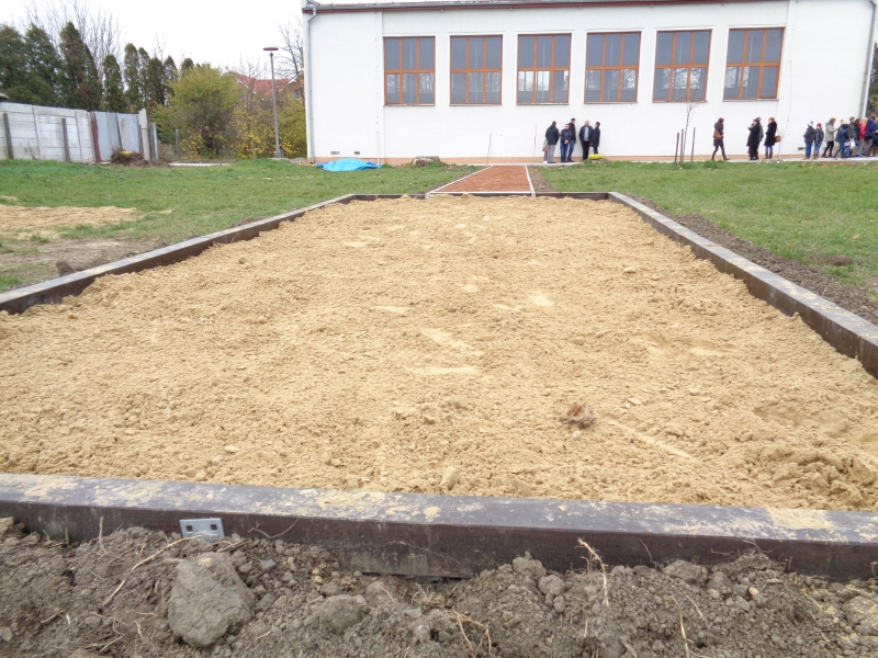 Egy példaértékű összefogás eredménye az itt látható távolugró pálya, amely már megfelel a mai követelményeknek. Köszönet érte mindazoknak, akik megépítéséhez bármilyen formában hozzájárultak. A pályázatot a Nyitrai Közösségi Alapítvány írta ki, a 25 pályázó közül pályázatunk bekerült a kilenc nyertes pályázat közé. A Bramactól 1000 euró támogatást kaptunk, amit az anyag megvásárlására költhettünk. A Kőrösi Kft. vállalta az anyag beszerzését, szállítását, de a pálya megépítése körüli munkálatokból is kivették részüket. A szülők, pedagógusok és iskolabarátok - összesen 33 személy, 272 óra társadalmi munkával járult hozzá a pálya megépítéséhez. Köszönet érte. Tanulóink a pálya körüli terület rendezésében vettek részt.
