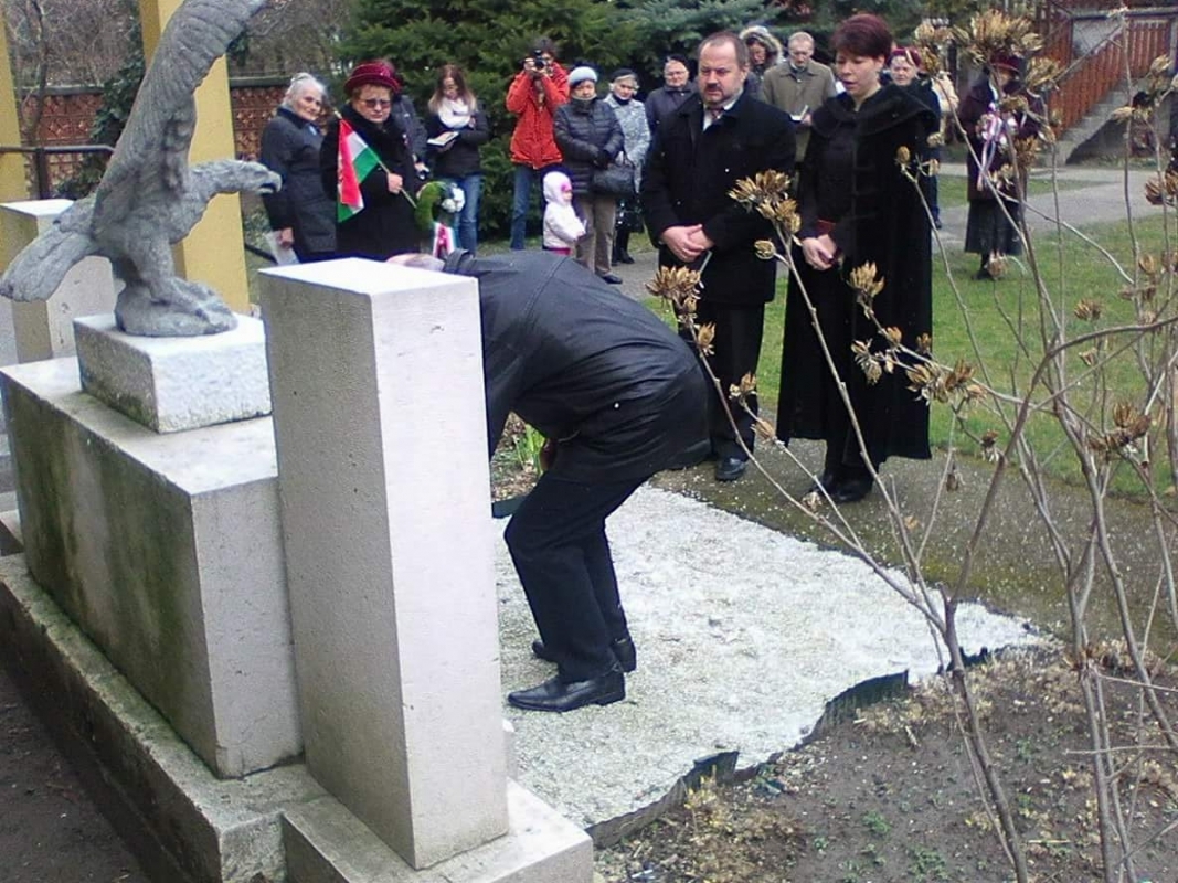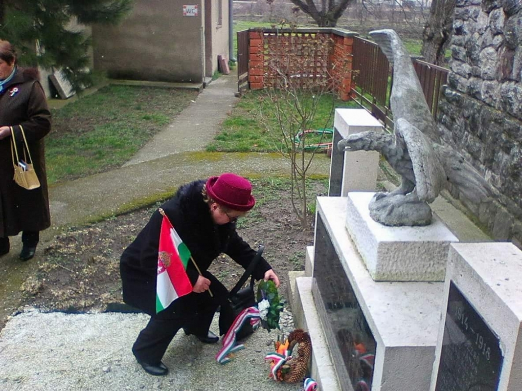 Ezután a Hősök emlékművénél az emlékezés koszorúinak elhelyezésére került sor: A Csemadok járási elnöksége nevében Dr. Suba Anna -, a református egyház nevében Nt. Dobai E. Kamilla tiszteletes asszony, Czanik Miklós és Réső Attila gondnokok-, a Csemadok helyi szervezete képviseletében Vadkerti Zita koszorúztak.