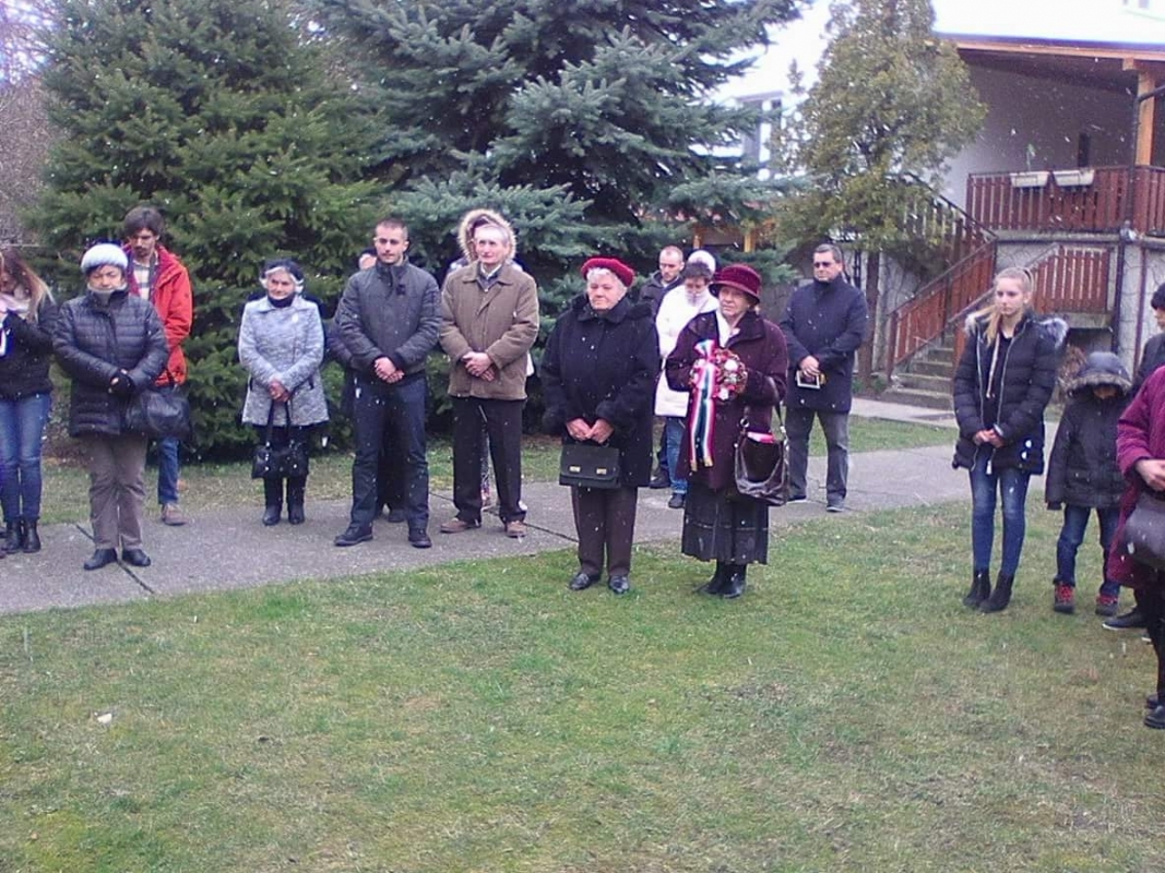 Március 18-án 10:00 órai kezdettel Nt. Dobai Egyeg Kamilla lelkipásztor hirdetett igét. Ünnepi igehirdetésében kiemelte az emberiség a szabadság iránti vágyát. Hangsúlyozta, hogy felvidéki magyarságunk megmaradása csak anyanyelvünk, kultúránk és hitünk ápolása, megtartása által lehetséges. Az istentiszteletet nemzeti imánk, a Himnusz elénekésével fejeztük be. Hagyományainkhoz híven a temlplomkertben folytattuk az ünnepi megemlékezést. A Csemadok helyi szervezetének nevében Hajdu Anna mondott ünnepi beszédet. Petrécs Lívia Kocsis Győző Magyarnak lenni című versét adta elő. Befejezésül Réső Gabriella Petőfi Sándor Nemzeti dal című versét tolmácsolta.