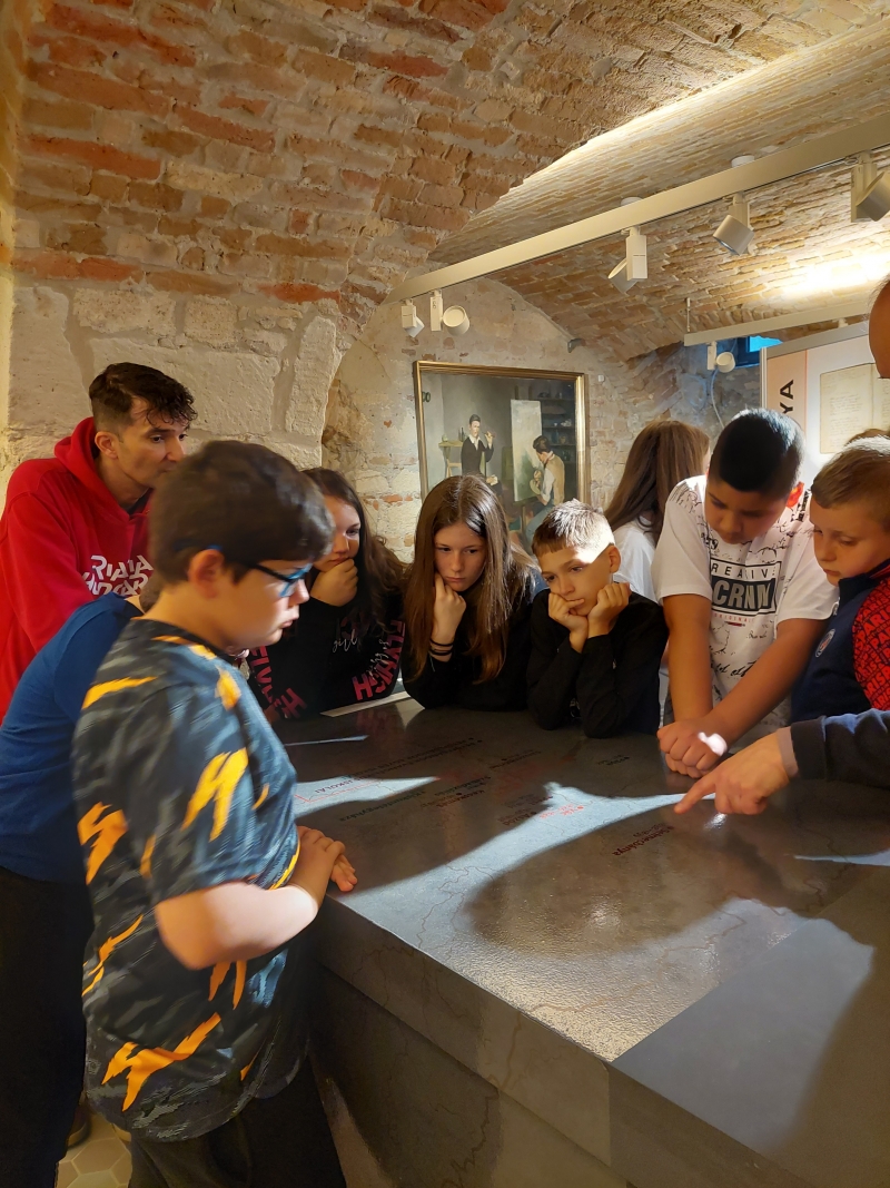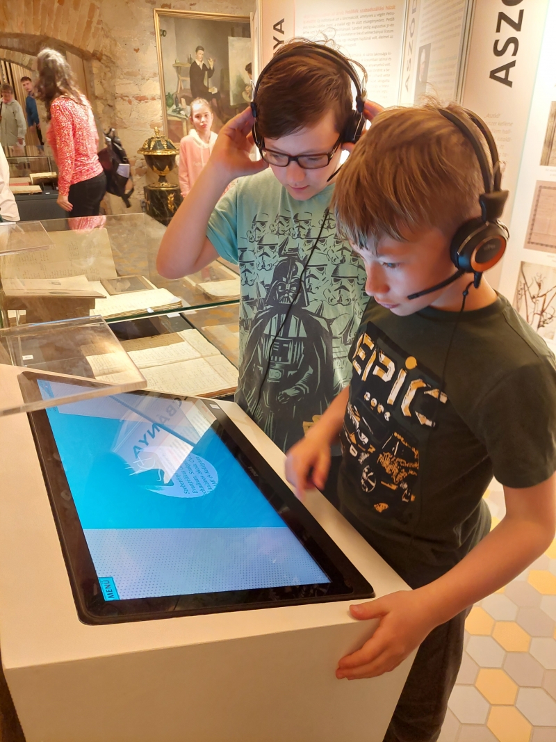 Az interaktív foglalkozásokat muzeológusok vezették. A tárlatvezetésen az evangélikus egyház anyakönyvében rábukkantunk a gyermek Alexander Petrovics keresztlevelére és megcsodáltuk a fából és bádogból készült keresztelő medencét, ami eredetileg a kiskőrösi templomban állt. Megismertük az elemi iskolában használt palatáblát és plajbászt. A Petőfi korabeli iskolapadokban ülve interaktív feladványokat oldottunk meg, a kiállított paravánokon böngésztük a sárszentlőrinci algimnázium (ma felső tagozat) feljegyzéseit, a selmecbányai líceumban szerzett érdemjegyeit. Mérőszalaggal távolságot számítottunk a Petőfi család lakhelyei, Sándor evangélikus és egyéb iskolái között. A lányok belebújhattak a Petőfi korabeli hosszú szoknyákba, a fiúk pedig magukra ölthették a sújtásokkal díszített posztó felsőkabátot. Nagy kalandot jelentett számunkra a szabadulószoba, ahonnan rejtvények, fejtörők megfejtésével, kulcsok meglelésével jutottunk ki.
