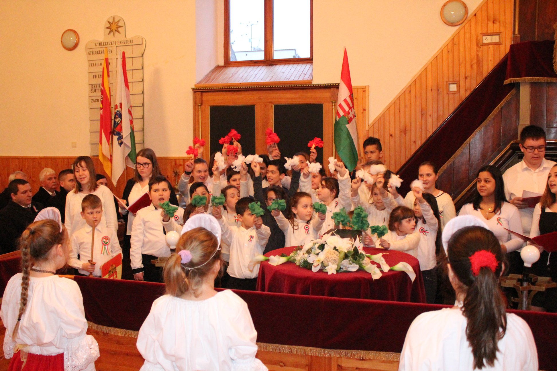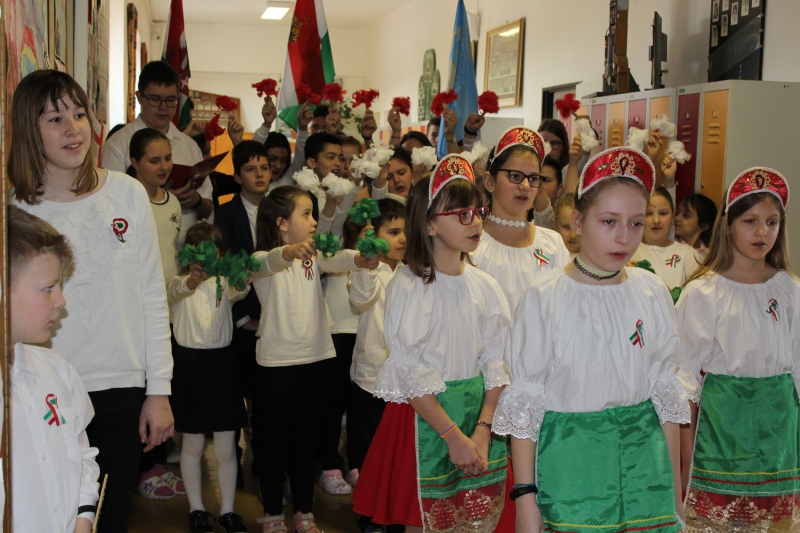 Az alsó tagozatos gyerekek is átérezték az ünnep hangulatát: ki a zászló lengetésével, ki a Nemzeti dal szavalásával, éneklésével adta át magát az ünnepnek. Nagyon büszkék vagyunk a gyerekekre, akik nagy szorgalommal és lelkesedéssel tanulták szerepeiket, fegyelmezetten és lelkesen próbáltak, az előadásba pedig szívüket-lelküket beleadták. Köszönjük nekik, hogy meghitté és emlékezetessé tették számunkra az ünnepi megemlékezést, valamint köszönet jár a pedagógusoknak is a felkészítésért.