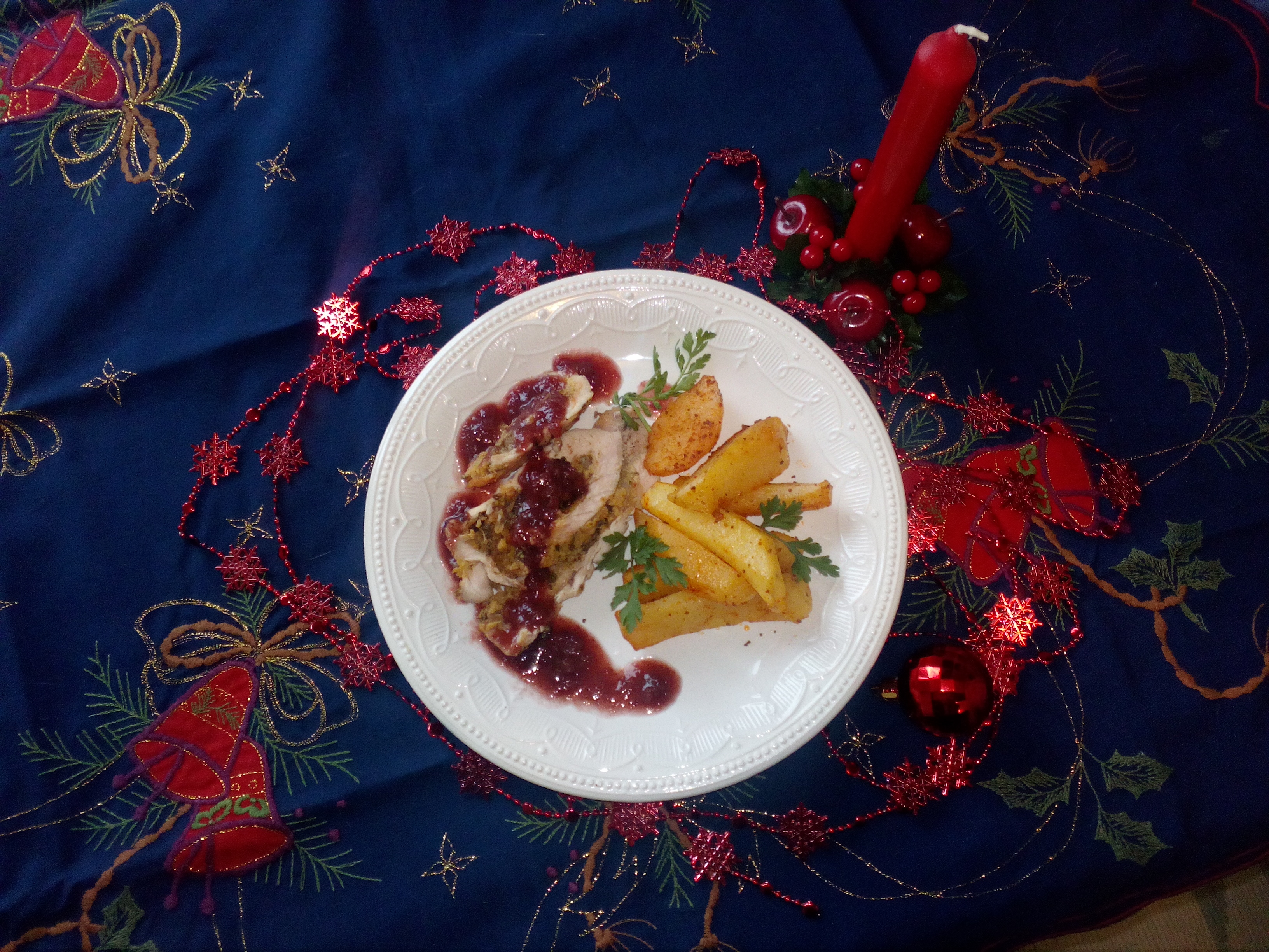 Pulykás recepteket angliai tartózkodásom alatt gyűjtögettem. A britek nagykarácsony napján eszik a sült pulykát kölönféle köretekkel. Leginkább párolt kelbimbóval, ami, hát mit is mondjak, rettenetes volt. Sokféle variáció létezik, az én családom az aszaltgyümölcsös változatot szereti, meggyszósszal.