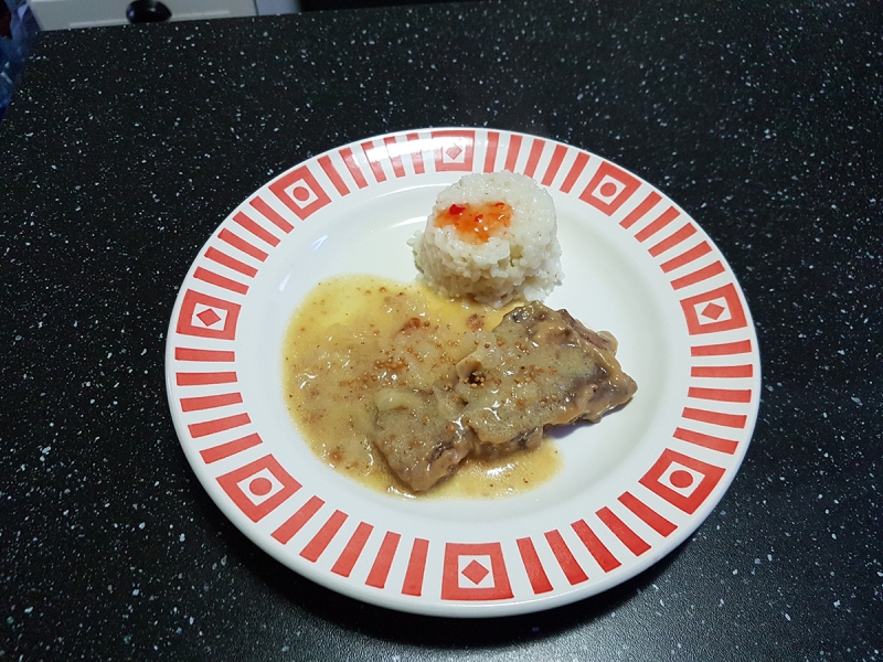 Elkészítése: A hússzeleteket kicsit megütögetjük, hogy porhanyósabb legyen. Mindkét oldalukon megsózzuk, megborsozzuk és vékonyan megkenjük mustárral. Kicsit állni hagyjuk, addig megpucoljuk a hagymát és szép elegáns félholdakra vágjuk. Teflon serpenyőben zsiradékon szép világosbarnára sütjük, ha kész, kiszedjük és félretesszük. A forró serpenyőbe újabb olajat löttyintünk, fogjuk a hússzeleteket és egyenként lisztbe forgatva előresütjük. Ha készek kiszedjük a húsokat és a serpenyőbe ½ liternyi vizet öntünk, hogy feloldjuk az odasült finom pörcöket. Aki szereti a bor ízét, könnyű fehérbort is használhat víz helyett. Fakanállal felkaparjuk az odaégett darabkákat, felforraljuk és ízesítjük sóval, egész borssal, a mustármaggal és egy teáskanálnyi mustárral. Visszatesszük a husit, hagymát és kis lángon puhára pároljuk. Ha kész, vagyis puha, én úgy csinálom, hogy újra kiszedem a húst és egy kanálnyi vajjal beforralom a szószt. Természetesen megkóstoljuk és esetleg ízesítünk. Néha kell egy ici-pici cukor is, ha nagyon savanykás a mustár. Meghintjük petrezselyemzölddel vagy apróra vágott csili paprikával. Ha gazdagabban akarjuk, tejszínt is tehetünk bele. Knédlivel, tarhonyával, rizzsel kínáljuk.