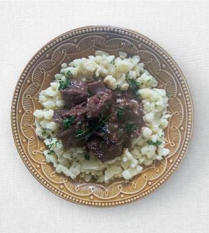 Állítólag egy orosz arisztokrata után nevezték el ezt az ételt, de a megalkotója egy francia szakács volt. Eredetileg bélszínből készül, én rostélyosból főztem, sőt pulyka-, illetve csirkemellből is főznek Stroganoffot. Sokféle változat van. Van, aki tejszínnel, van, aki tejföllel habarja be, de az biztos, hogy a savanyú csemege uborka és a gomba nem hiányozhat.