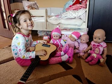 „Nagyon hiányoznak a ringató foglalkozások Miusnak és nekem is. Nézzük az online Ringatókat és sokat éneklünk és gitározunk otthon. Úgy játszunk, hogy a Miuska az Ivett (a mi Ringatós foglalkozásvezetőnk) én meg tapsolok és éneklünk közbe. Nagyon szereti "A Dunáról fúj a szél"-t és sok mást is.”
