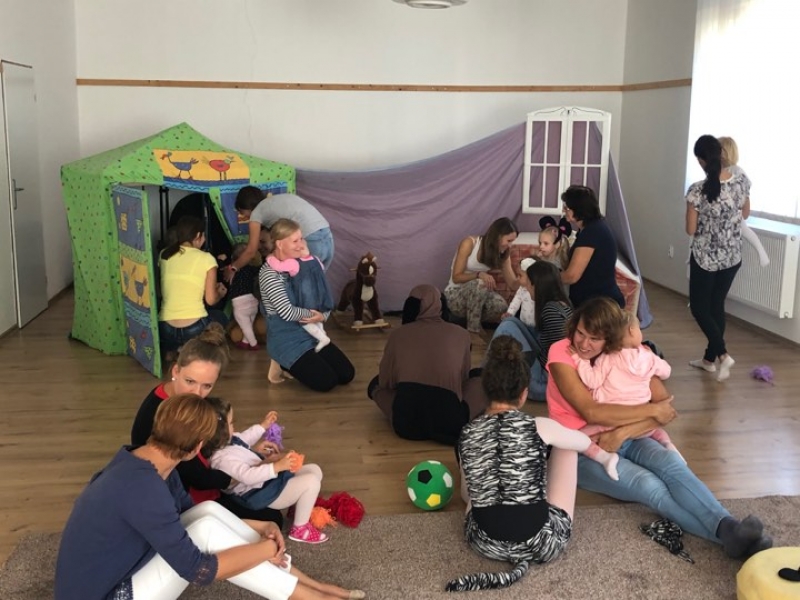 - Ringató foglalkozások, melyet a helyi munkatársunk tart heti vagy 2 heti rendszereséggel, mely már 3 hónapos kortól javasolt a babáknak és a kisgyerekes anyukáknak/apukáknak. Ez a programrész mozgással, dallal, hangszeres zenével, mondókákkal, mosollyal és sok-sok szeretettel segít a baba-szülő kötődés elmélyítésében, a gyermek figyelmének, zenei hallásának, érzékszerveinek fejlesztésében. A Ringató foglalkozás időtartalma 30 perc, melyet igény szerinti hosszúságú szabad beszélgetés és játék zárhat.