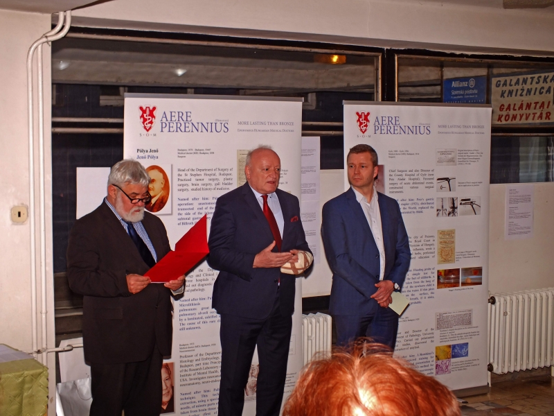 A megnyitón Disztl Antal, Magyarország Pozsonyi Nagykövetségének első tanácsosa, Molnár Imre, a Pozsonyi Magyar Intézet igazgatója és Forró Krisztián, a Megbecsültek Társasága elnöke köszöntötte az egybegyűlteket, valamint tolmácsolták Dr. Kiss László orvostörténész gondolatait.