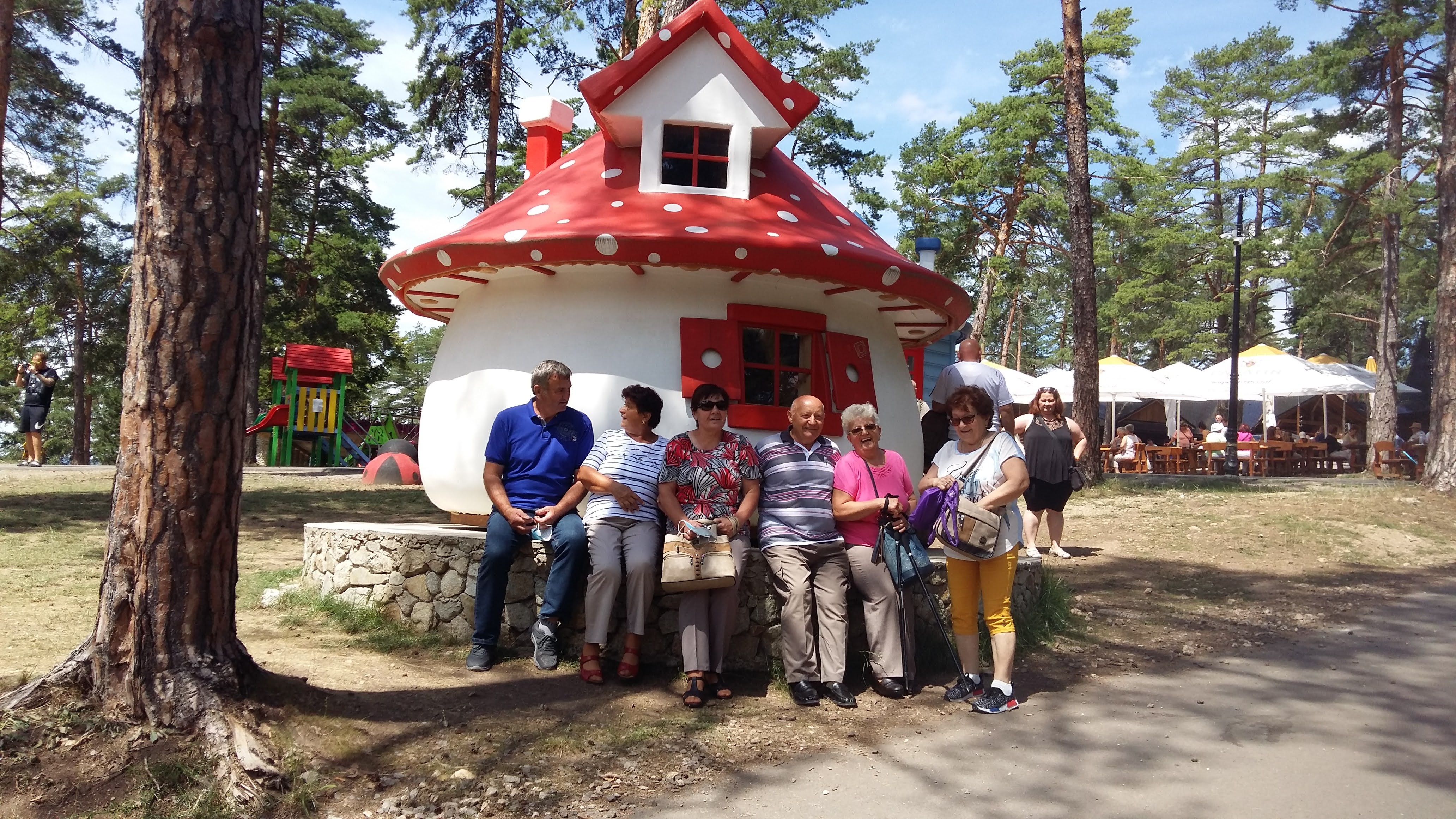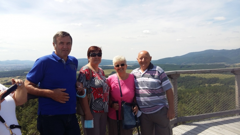 Alaposan megváltoztak mindennapjaink, óvatosabbá váltunk, de ugyanakkor a meglévő emberi kapcsolatok még erősebb köteléket szőttek közénk. Mindannyian vártuk már a találkozást az összeszokott csapattal és a Mátyusföld szerte szétszóródott szépkorú baráti társaság nagy örömmel üdvözölte egymást újra a júliusi utunk során. Bajmócra vezetett utunk, ahová két busszal érkeztünk meg, hogy felsétálva a lombkorona sétányon, megcsodálhassuk a meseszép panorámát. A nemrég épült kilátó kellemes környezetben, nem megerőltető sétával a lombok feletti magasságba kalauzolja az idelátogatót.
